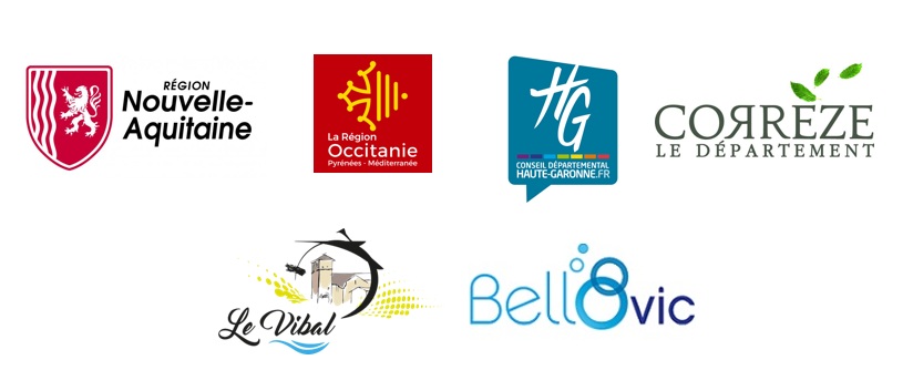 La Région Nouvelle Aquitaine, la Région Occitanie Pyrénées / Méditerranée, le Conseil départemental de la Haute-Garonne, le Conseil départemental de Corrèze, la commune Le Vibal, le syndicat mixte Bellovic